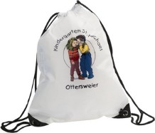 Der Rucksack für Kinder und Erwachsene. Mit bedruckbarer Frontlasche. Verstellbare Schultergurte und Schnürkordel. Größe ca. 230x170x75mm