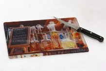 Das 20x28 cm große Glasschneidebrett mit dem Sie sicherlich gut abschneiden. Strukturierte Oberfläche. Rückseite weiß beschichtet und auf 4 Füßchen wird das Brett zur soliden Grundlage. Weitere Größen auf Anfrage.