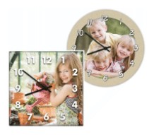 Rund oder eckig - auf jeden Fall ein Hingucker. Das Glas der runden Uhr ist strukturiert, das Glas der Quadratischen glatt. Der Ziffernaufdruck ist gegen Mehrpreis möglich.
